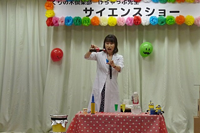 本日はサイエンスショーを行い、幼稚部さんが科学の実験を見ました。 来てくださったのは「くりの木倶楽部」のけちゃっぷ先生こと岩立 直子先生。 遠く鎌倉からやってきてくれました。 まずはコーラがさまざまな色に変化しました。 …