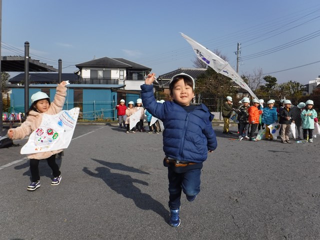 本日は凧あげ大会をしました。 幼稚部さんは桃の木公園で、保育部さんは園庭で凧をあげました。 幼稚部さんはゲイラカイト型、模様は自分たちで描きました。 保育部さんはビニール袋製です。 保育部さんの凧には今年の干支の犬が付い…