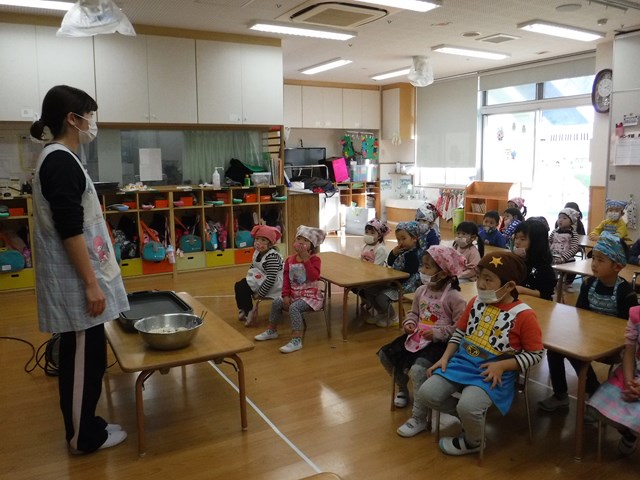 給食ブログにも載っていますが本日、幼稚部さんは 食育活動で切り干し大根のおやきを作りました。 調理師の先生からおやきの説明と注意事項を聞きます。 生地は先生が準備してくれました。 それを2つのスプーンでプレ…