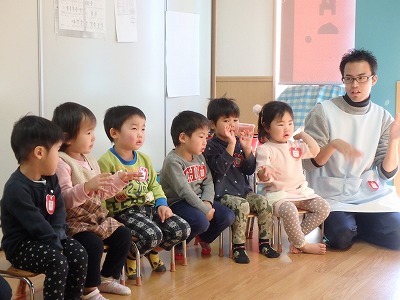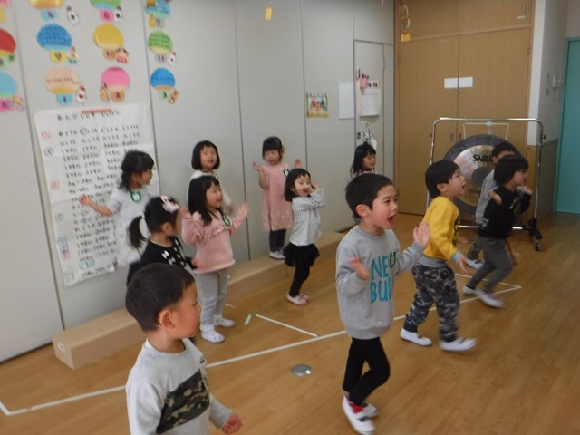 今日はイルカ組さんの様子を覗いてみました!! 子ども達がいつも楽しみにしている英語教室の時間でした☆ いつもの朝の歌です!!イルカ組さんは今はとても上手に歌いながら振り付けまでできるようになりました(^^)/ 12月でク…
