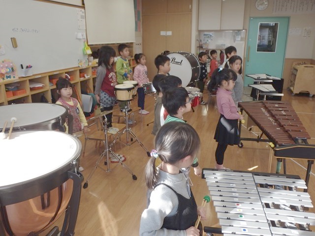 本日は音楽指導を行いました。 音楽の先生に来ていただいて発表会に向けての 楽器の指導をしていただきました。 各楽器に別れて練習をしたあと全員で合わせました。 ギリギリまで練習したので今日は椅子…