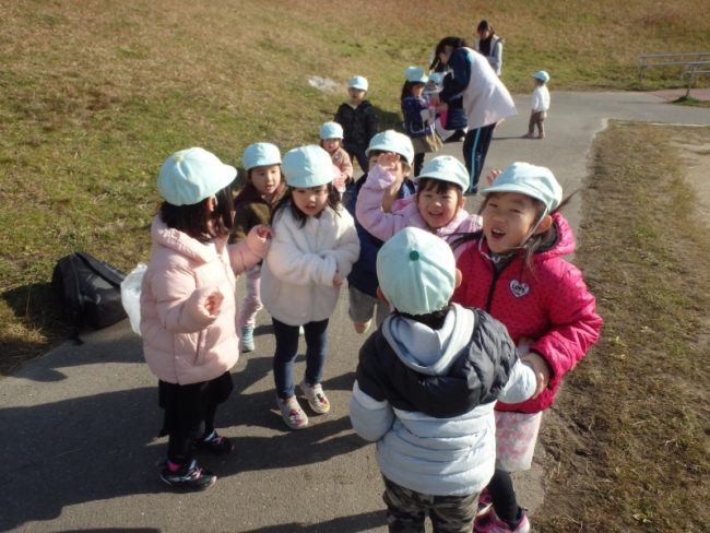 本日ペンギン組さんは治水緑地にお散歩にいきました。 段ボール滑りをしました。この季節のお楽しみです。 駆けっこもしました。 今日はとっても寒かったけど元気なペンギン組さんでした。