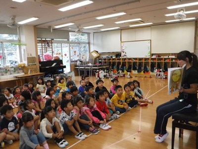 本日は9月生まれのお友だちの誕生日会を行いました。 前にお休みしていたお友だちと合わせて6人のお祝いをしました。 先生の出し物は「さるかに合戦」のパネルシアター。 大変盛り上がりました♪ 今月誕生日の先生にもお誕生日カー…