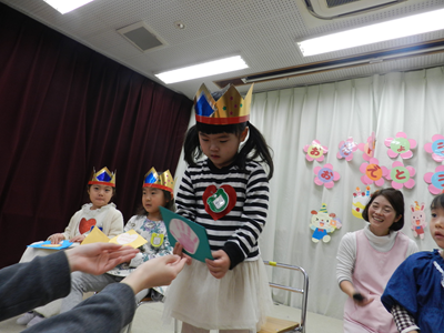 今日は12月のお誕生日会を行いました。 今月は6人のお友達がお誕生日でしたよ。 みんなでお誕生日のお歌を歌ってお祝いしました。 藤田先生と松本弥生先生による出し物はシルエットクイズと 1方の先生が投げてもう一方が受け取っ…