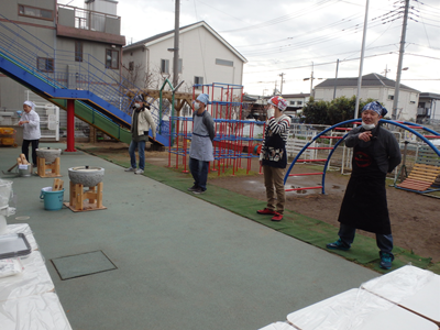 今日は幼稚部のみんなで桃の木公園まで遊びに行きました。 ライオン組さんがパンダ組さんと手を繋ぎながらの移動です。 桃の木公園では駆けっこや遊具で遊びました。 遊びの合間に日向ぼっこ(*^_^*) これだけ広いとお絵かきも…
