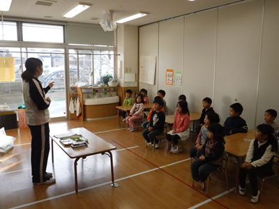 七草粥の体験です。 調理前に実物もちょっとずつ用意して観察しました。 セリ、ナズナ(ぺんぺん草)、ゴギョウ(母子草)、ハコベラ(こはこべ) ホトケノザ(小鬼田平子)、スズナ(カブ)、すずしろ(大根) カブ、大根以外で「こ…