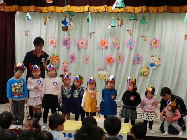 本日は11月生まれのお友達のお誕生日会でした(*^o^*) お誕生日のお友達への「質問コーナー&記念カードのプレゼント」タイム♪ お誕生日ケーキのろうそくの火は、皆で協力して「ふーっ」と上手に吹き消しました! 先生達から…