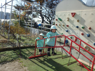 日中はお日様が出てぽかぽか暖かかったですね(#^.^#) そんなお天気の中子どもたちは園庭遊びをしました★ 吊り橋を渡ったり、 滑り台を滑ったり、 三輪車やバイクに乗ってとっても楽しそうでした♡ お砂場遊び…