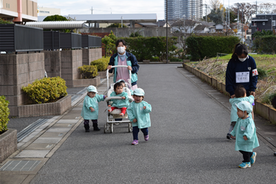 全員で治水緑地までお散歩へ行きました(^o^)/ 初めは走り回って遊びました! みんな元気いっぱいです♪ ラッコ組さんは先生と一緒に坂登りに挑戦していましたよ(^^…