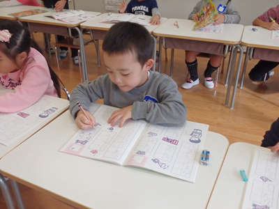 本日、ライオン組さんはひらがなの練習をしました。 練習帳を使いお手本をなぞった後、自分で書いてみます。 一文字一文字丁寧にしっかりと書いていきます。 最後は自分の名前とお友だちの名前を書きだしてみました。 ライオン組さん…