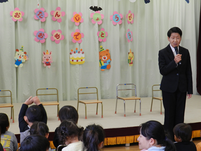 本日は10月生まれのおともだちのお誕生日会を行いました。 まずは園長先生のお話です。 今月はキリン組さん4人、ペンギン組さん1人、ラッコ組さん1人の6人でした。 質問会とお誕生日カードのプレゼント。 好きな…