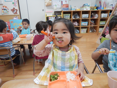 今日のキリン組さんは英語教室です。 おやつに出てくる英単語を中心にお勉強しましたよ。 お勉強の後は園庭で遊びました。 ジャングルジムやお砂場が人気です。 突如綱引き?も始まりました。 本番が出来るのは来年だね(^^)