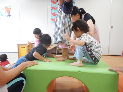 ペンギン組さんは巧技台(滑り台のような室内遊具) やトンネルを使ってで遊びました♪♪ わくわく、功技台の下から覗いてみたり もぞもぞ動くトンネルの中に興味深々*** その先にはト…