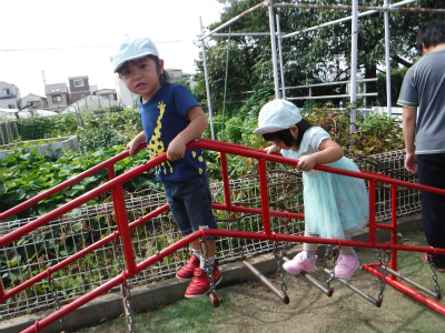 保育部、幼稚部合同で園庭に出て遊びました! みんな好きな遊びを楽しんでいましたよ(*^。^*) 先生と一緒に虫を探している子も居ました♪ 「いるかなー?」「なにか動…