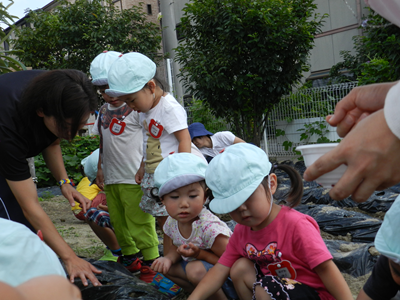 今日イルカ組さんは大根の種まきをしました。 先生の説明を熱心に聞いています。 穴をあけて種を入れて・・・ 埋め戻します。12月が楽しみだね♪♪ 一方キリン組さんは園庭遊びをしました。 鉄棒にぶら下がったり …
