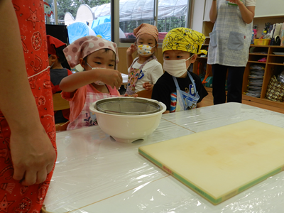 今日は幼稚部でカレーパーティーがありました♪♪ 説明を聞いた後、ライオン組さんは、お米をといで キリン組さんは、人参をピーラーでむきます。 パンダ組さんはスープ用レタスをちぎって …