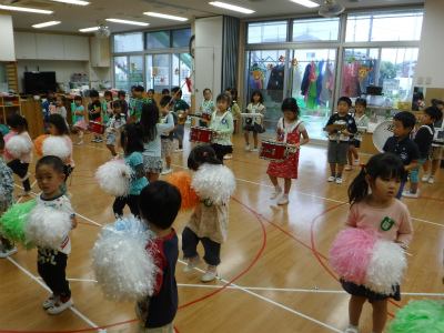今日は、運動会のリハーサルを 保育部さんと幼稚部さん、みんな一緒に行いました(*^_^*) 開会式から始まり 最後は閉会式までやりましたよ♪ 開会式では、園長先生のお話も しっかり聞くことが出来ていました! 一等賞体操で…