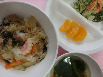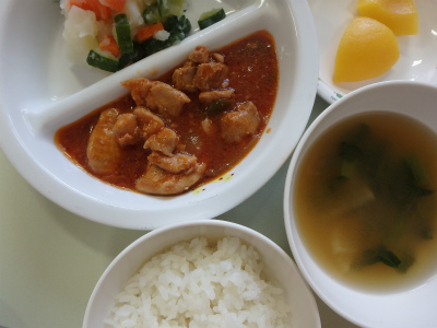 ~今日のお給食~ ・鶏肉のトマト煮 ・ポテトサラダ ・ごはん ・だいこんとこまつなのみそ汁 ・モモ ~今日のおやつ~ ・チーズボールフライ