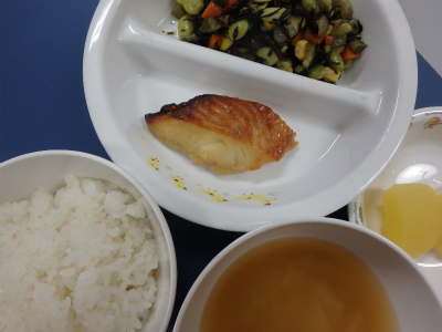 ~今日のお給食~ ・カレイの甘味噌焼き ・枝豆とひじきのサラダ ・ごはん ・キャベツとえのきのみそ汁 ・りんご ~今日のおやつ~ ・そうめん