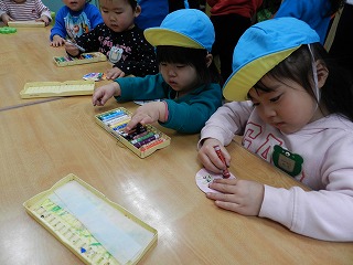 今日は来月にあります豆まき会の製作を行っていました。 保育部は階段に作品が飾ってあります(^o^) 幼稚部もクレヨンで鬼の顔を描いて作りました! 幼稚部はキリンライオン組の前の廊下に飾っ…