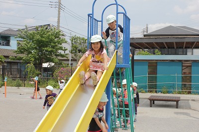 今日は、ペンギン組さんに密着!!気持ち良い風を浴び、ニコニコのみんな! 先生は何をしているのかな?興味深々!!「シャボン玉だ~」 太陽の光があたりキラキラしています。待て待て~シャボン玉を追いかけて 行きましたが、どこか…