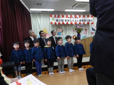 今日は、第3回草加なかよし保育園の卒園式がありました。キリン組のお友達も静かに座ってライオン組のお友達のことを見ています(^O^) 園長先生のお話です(^O^) 一人ひとり証書をもらいました(^^♪みんな上手に卒園証書を…