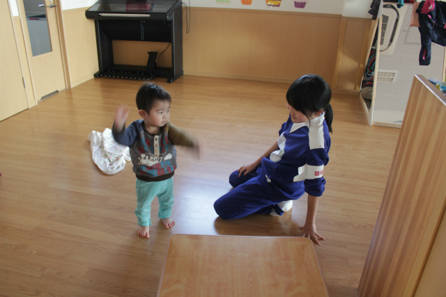 今日は園庭開放がありました。 外の気温は4度と表示されていた朝10時ですが、子供たちは「寒くないよ!」ととっても元気にとびだしていき、大好きなバナナおにごっこを3、4,5歳がやり始めました(^_^) やらない子供たちはま…
