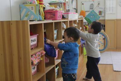 「お外で遊ぼうかな~」 と保育士がつぶやくとすぐに準備を始める子ども達☆ 自分の上着をロッカーから出してきます! イルカ組(2歳クラス)のお友達はチャックだって自分でできちゃいます(^^)v 手伝おうとすると「自分ででき…