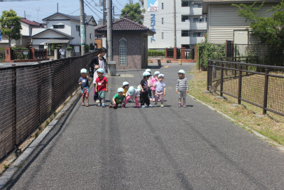 今日はイルカ組さんに密着です! お友達と仲良く手を繋いでお散歩に出発(^○^) 治水緑地に着いたらかけっこです♪ いちについて、よーい・・・どん!!! やったー!ゴールです(^^…