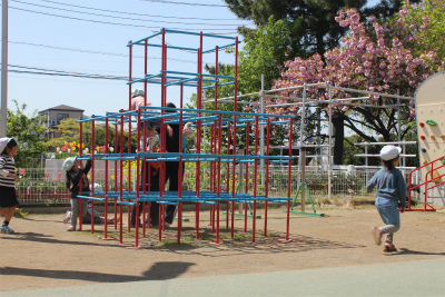 今日は雲がないくらいいい天気! 朝から園庭でみんなで遊びました\(^o^)/ 鉄棒やロッククライミングでとっても上手に遊んでいますね お砂場ではなにやらレストランごっこで遊んでいる様子。 なに…