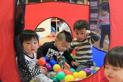 今日はペンギン組のボールプールに密着!! ボールを見つけると大興奮\(^o^)/ みんな嬉しそうにボールに駆け寄っていました(^^) テントの中にボールを集めてみたり、 牛乳パックにボールを入れてみたり、 …