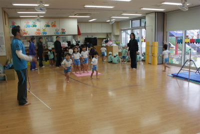 今日は金曜日なので、幼稚部のみんなは毎週やっている体操教室を行いました 今日の体操教室はというとー、、、 大縄跳びでした!(^^)! みんな上手に跳んでいきます こんなに大きくジャンプ! 縄をゆうゆう超えて…