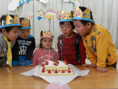 今日は12月のお誕生日会がありました\(^o^)/ みんな自分の名前や年、好きな食べ物などとっても上手にインタビューに答えることができました!! みんなでろうそくの火を「フー!!」(^^)v 見ているお友だちも「おめでと…