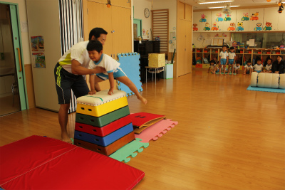 今日は金曜日。 金曜日といえば…? みんなが大好き、てっちゃん先生の体操教室がある日です!!! ライオン・キリン組のお友だちは跳び箱5段に挑戦です!!! みんなとっても上手に飛ぶこ…