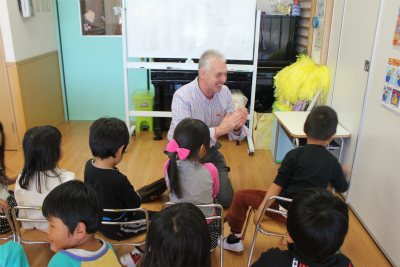 今日は月に1度のデイビット先生の英語教室の日☆ 一人ひとり自分の名前と年齢を答えています。 少し緊張気味・・・((+_+)) 今日はハロウィンの単語を覚えました! おばけ・魔女・こうもり・ふくろう・カラス・蜘蛛・カボチャ…
