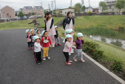 今日は秋晴れの中元気に全クラスお散歩にでかけました! ペンギン組さんが治水緑地に到着すると、すでにラッコぐみさんは一足さきに元気に遊んでました♪ ペンギン組さんはラッコ組さんに 「お~~~~い…