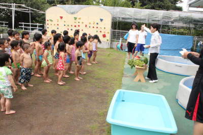 今日はプール開きがありました!! 子ども達はみんなとても楽しみに待っていたので 良いお天気になりよかったです(^^) さっそく水着に着替え、園長先生のお話をしっかり聞いて(*^_…