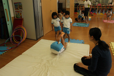 今日は蒸し暑い一日でしたね★ 金曜日は体操の日!!みんな一生懸命頑張っていました(*^。^*) 前転も上手になりました お友だちを踏まずに飛べるかな? ジャンプジャンプ~\(^o^)/ 保育部もリズムでたく…