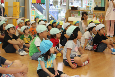 今日はとっても暑かったですね(*^_^*) 今日も保育園のお友達は、暑さに負けず元気一杯遊びました★ 今日、お誕生日の子がいました(^^♪ 黄色いスカーフが目印です?今後も見かけたら「おめでとう」と声をかけてください? …
