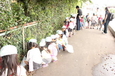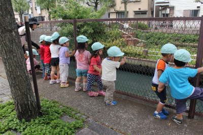 快晴とまではいかないものの、久しぶりにお散歩に出かけることができました!! ペンギン組さんはみんな並んで、「ハイ!!ポーズ?」 治水地でザリガニを見てから帰ってきました ライオン組さんはアルフ…