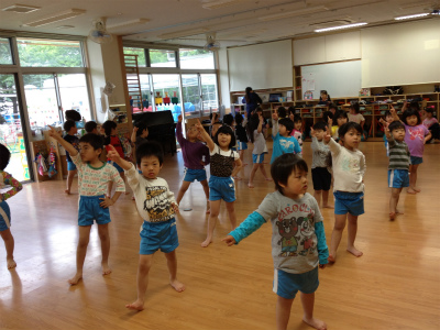今日もみんな元気に登園してくれました(^o^)丿 幼稚部のみんなは朝一等賞体操を踊りました! みんなとっても元気に上手に踊ることができました(^^)v 今日はゆりこ先生の英語教室…