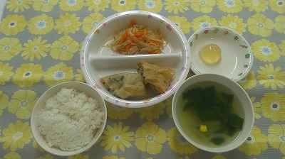 ~今日のお給食~ ・レバーとポテトのオーロラソース和え ・もやしのナムル ・ごはん ・味噌汁(お麩・にんじん・わかめ) ・みかん ~今日のおやつ~ ・牛乳 ・お好み…