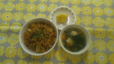 ~今日のお給食~ ・焼きそば ・肉団子スープ ・バナナ ~今日のおやつ~ ・ひじきおにぎり ・牛乳