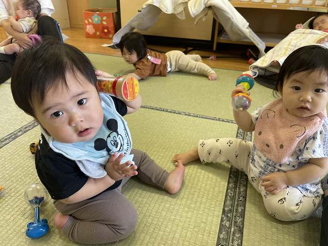 保育園での生活にも少しずつ慣れ、 ラッコ組のお友達はいろいろなもの興味がでてきました★ お部屋で知育おもちゃを出すと みんな興味津々! …