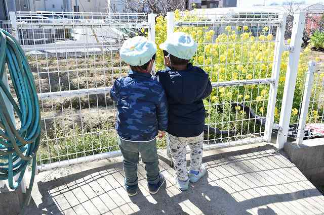 今日はペンギン組のお友達は園庭で遊びました。 畑や園庭に咲いているお花に興味を持ったようで、お友達と一緒に眺めながら お話を楽しんでいました。 きれい…