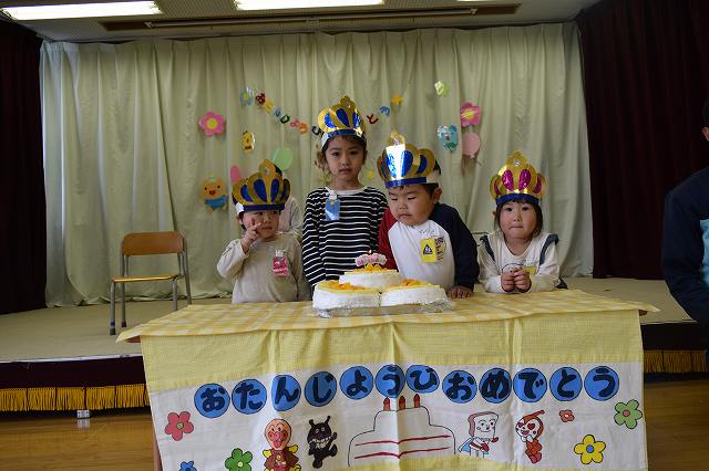 今日は3月生まれのお誕生日会を行いました。 みんなとても大きくなり、舞台の上でもインタビューに答えたり、返事かできるようになりました。 先生からお誕生…