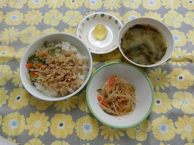 ~今日のお給食~ ・ちくわチーズフライ ・白菜のおかか和え ・ごはん ・味噌汁(わかめ・豆腐・なめこ) ・みかん ~今日のおやつ~ ・ビスケット ・おせんべい &n…