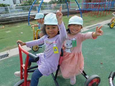 今日は、園庭に出て遊びました(*^-^*) みんな元気に遊んでいました! 乗り物や砂場など好きな遊びを楽しんでいました♡ 明日はいよいよ運動会です(^^)/ みんな元気に来てください♪