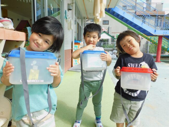 今日はキリン組の様子です 午前中はクラス交流があり、キリン組はイルカ組と一緒に治水緑地に 散歩に行きました 広場では虫かごを持って行き、トンボやバッタを捕まえて友達に教えたり 観察したりしていました 午後はそれぞれで制作…