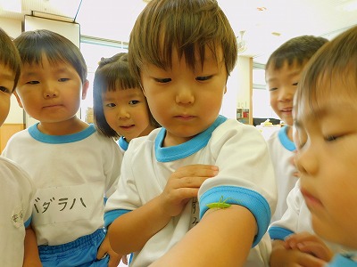 今日はパンダ組のお友達が、体操指導に参加しました。 体操の先生がお部屋に来るのを待っていると 何やら床をピョンピョン飛び跳ねるものを子ども達が発見しました。 &nb…